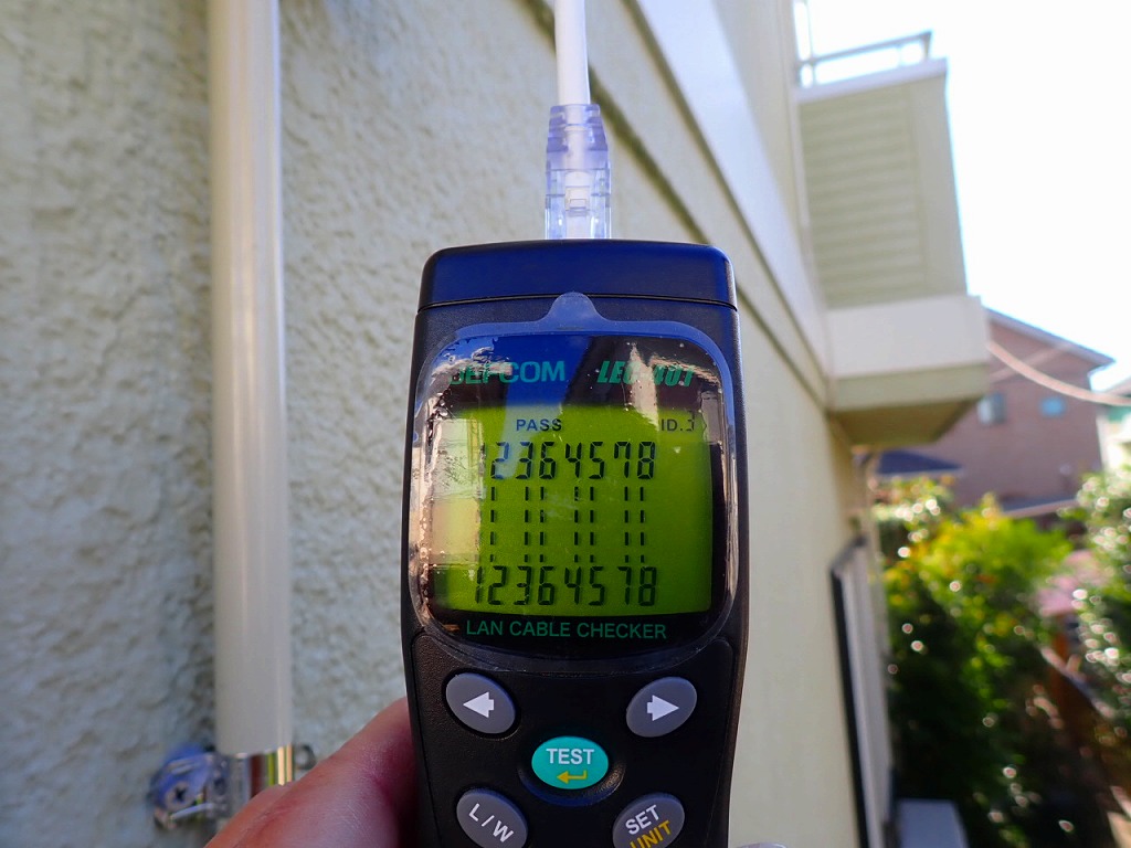 LANチェッカーを使って断線や誤配線が無いか確認します。