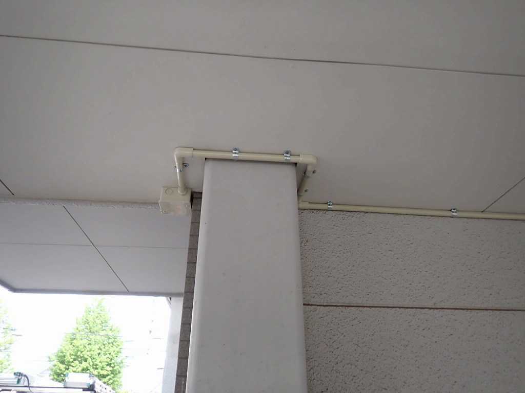 防犯カメラまで塩ビ樹脂管を使って敷設します。
